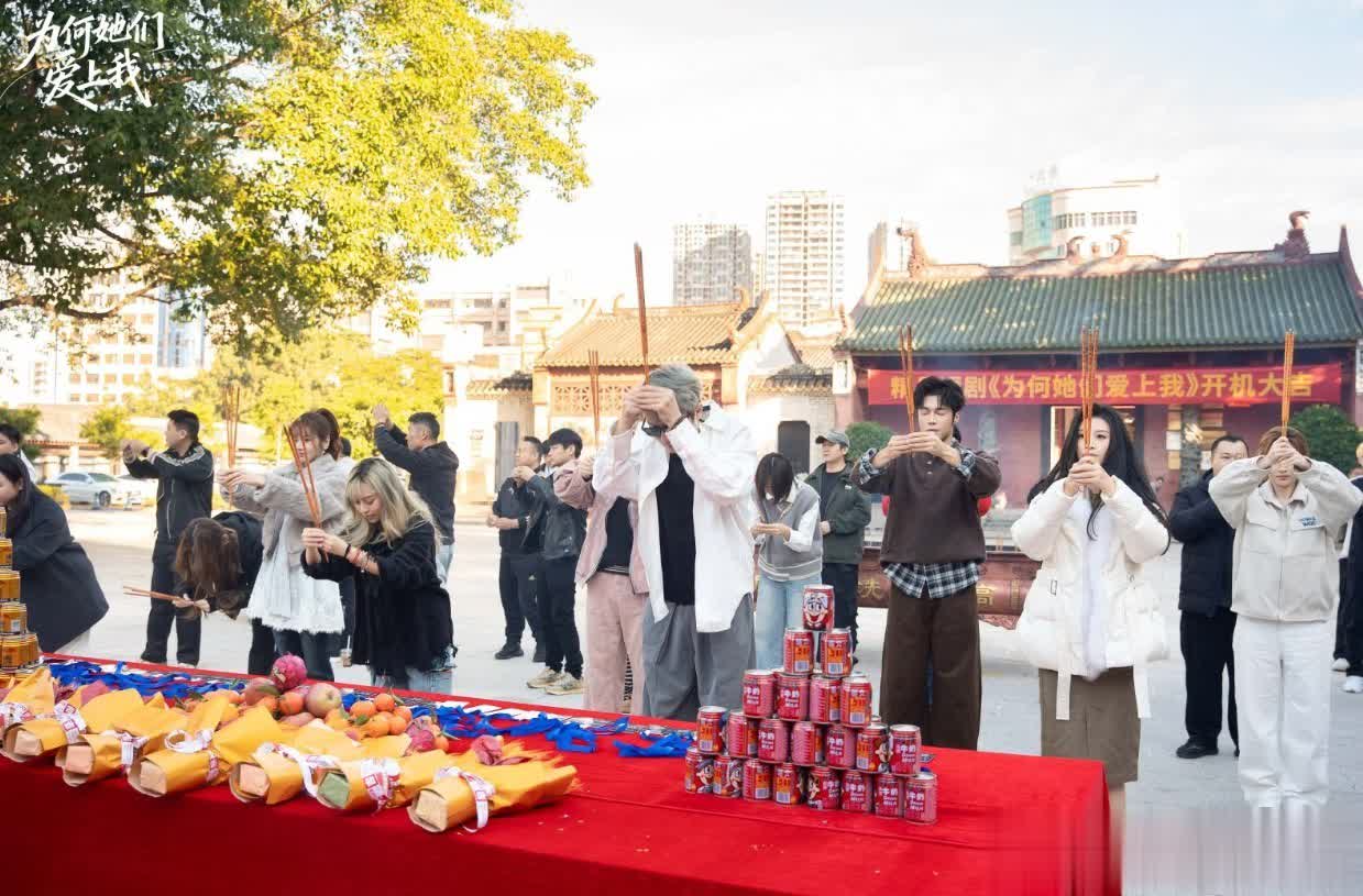 11月22日,短剧《为何她们爱上我》在广东茂名高州举行开机仪式,来自TVB的丁子朗、陈若思、郭珮文以及内地金鸡奖最佳女配角奖得主尤佳、女网红林木婷子等出席。下图为开机仪式现场合影图: